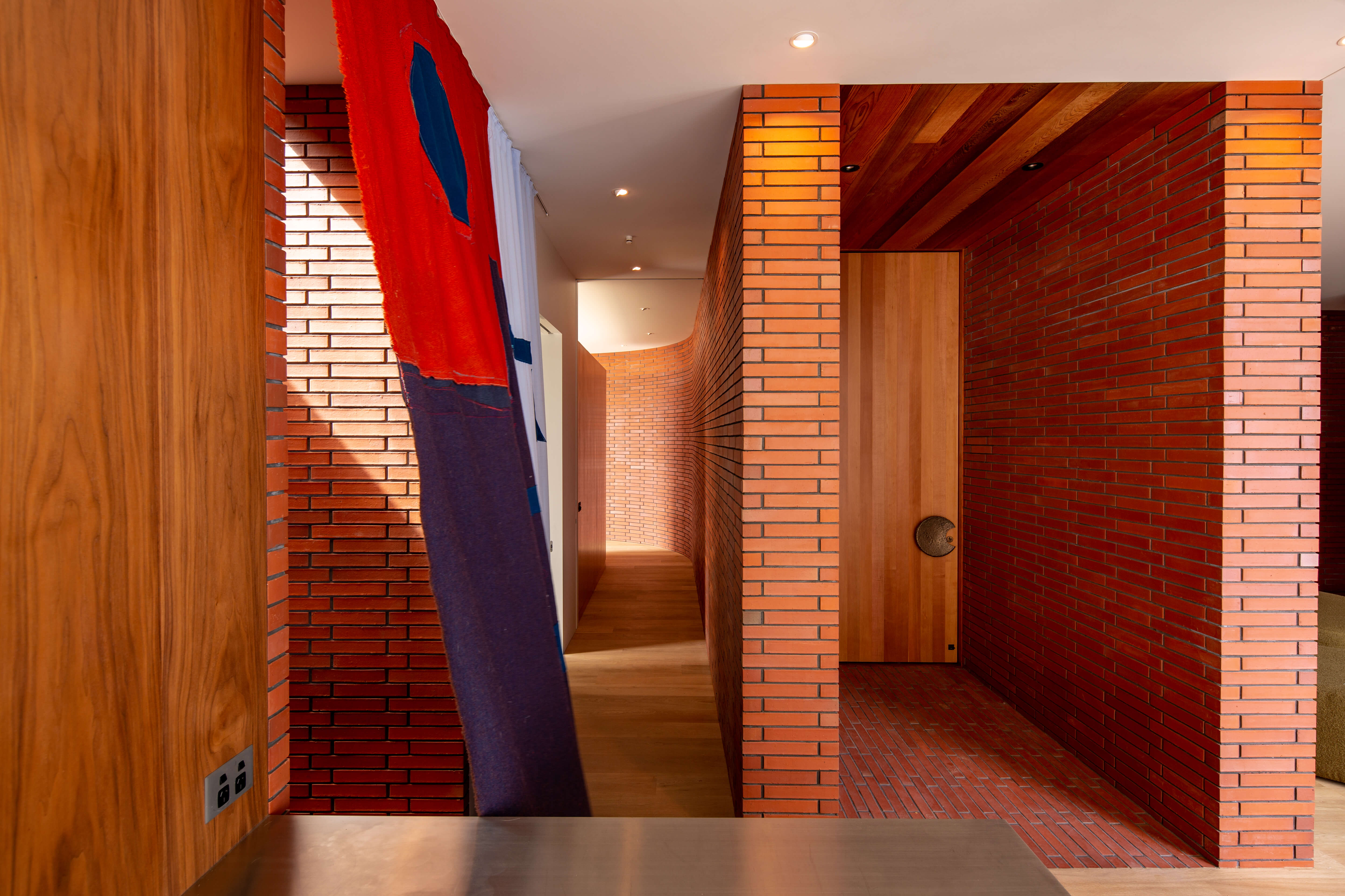 As seen on TV! This beautiful red brick home nestles itself so gently into the dunes of Tern Point, Mangawhai. The building produces a grace from it’s solidity in the ever changing dunes, utilising a thin Roman profile, in a smooth red custom-made brick from Canterbury Clay Bricks, both inside and out.