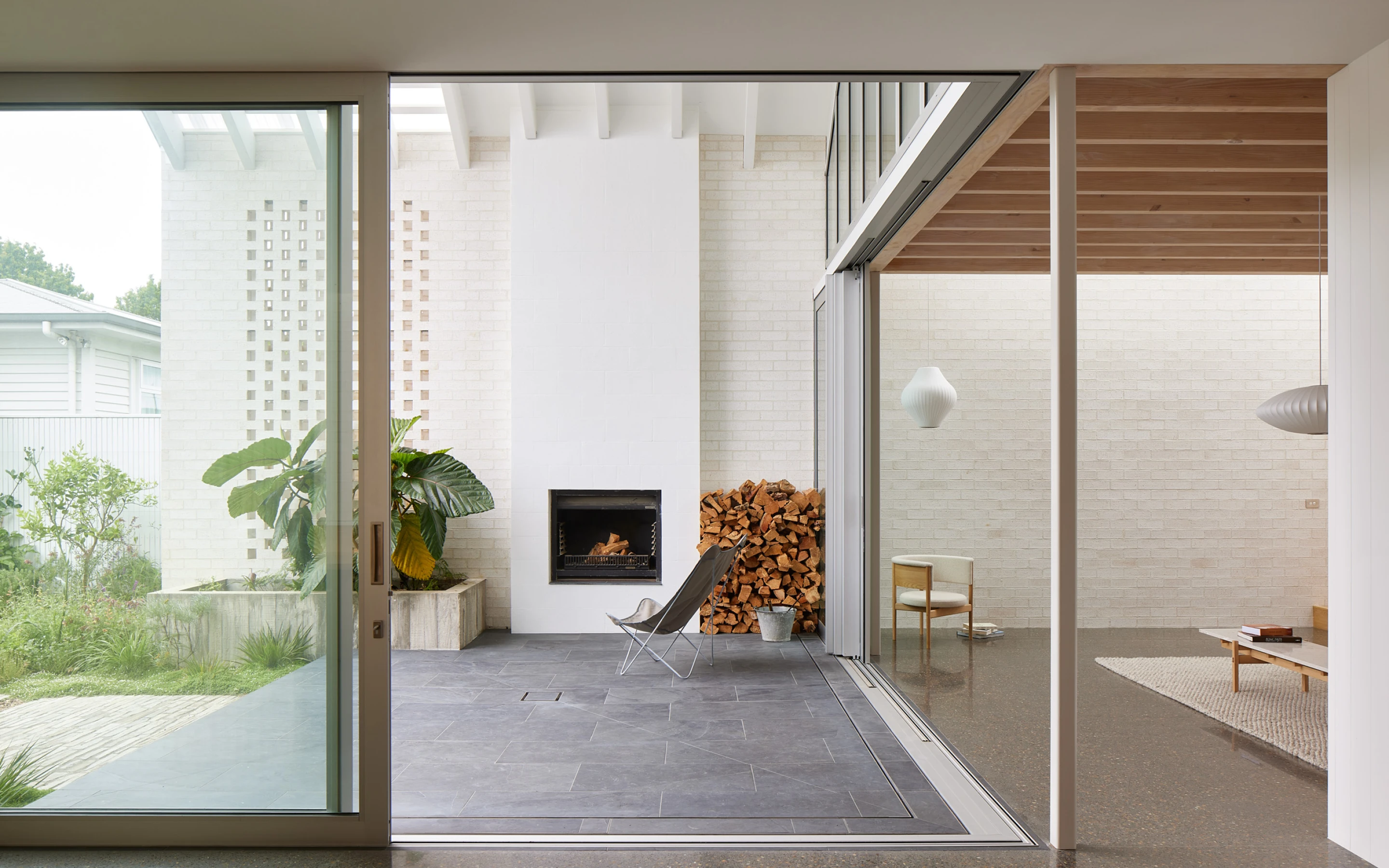 In this case our New Zealand-made, kiln-fired clay, Aoraki bricks, were chosen for a very subdued yet light filled home. Creating a courtyard outside with a perforated brick wall, and double height roof, the house appears larger than it’s 180 m2 floorplan suggests. This thoughtfully created plan mixes a series of intimate living spaces both indoors and out for all of the occupants.